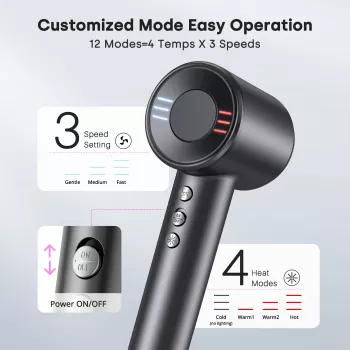 • 1000W Brushed Motor: High-speed motor (60,000 rpm) for fast and efficient styling