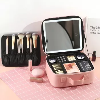 Large Travel Makeup Bag with Mirror & Light