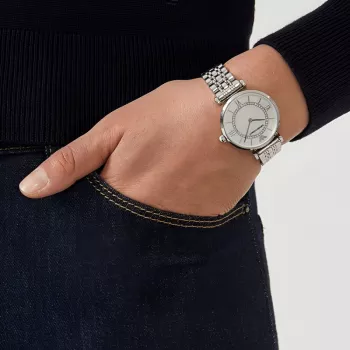 • Chic and Sophisticated Design: The light blue color combined with the metallic logo offers a fresh and stylish look that complements a variety of outfits.