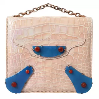 Balenciaga Neo Classic Mini Chain Bag in Crocodile Leather – Beige & Blue
