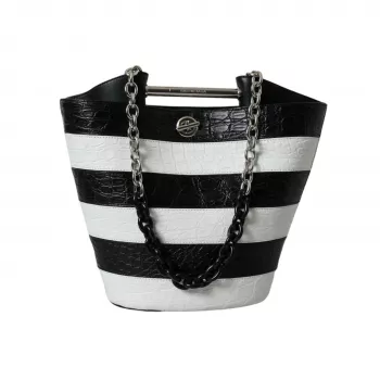 BALENCIAGA Crocodile Leather Maxi Bucket Bag – Black & White