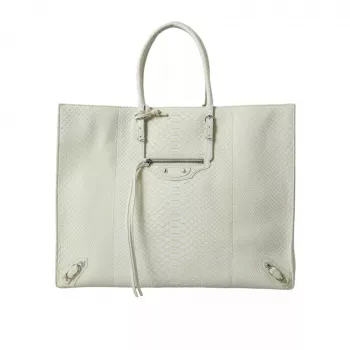 BALENCIAGA Python Leather Papier Tote Bag – White & Lemon Yellow