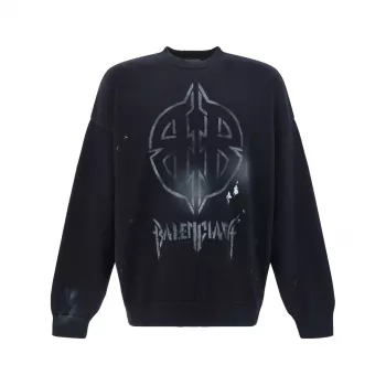 Balenciaga Cotton Sweatshirt with Front Maxi Logo and Ribbed Details