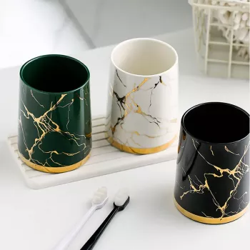 Elegant Marble Ceramic Bathroom Cup Set
