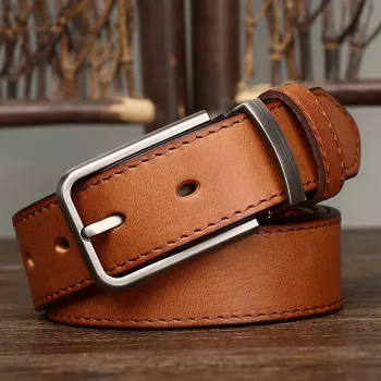 Genuine Leather Belt for Men with Copper Double Needle Pin Buckle