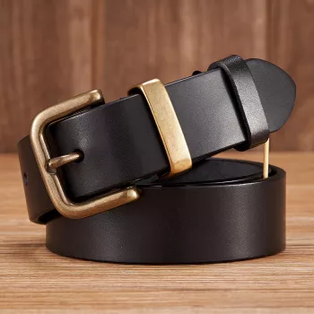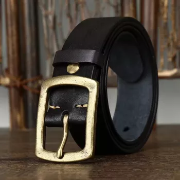 Thick Genuine Leather Belt for Men with Brass Buckle
