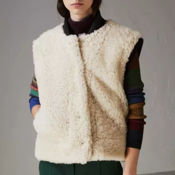 BURBERRY Warrenford White Sheep Shearling Vest Jacket