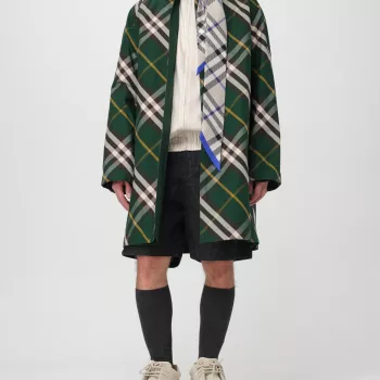 Burberry Merino Wool Cape with Shawl Lapels and Archivio Check Interior