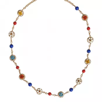 This Dolce & Gabbana necklace is more than just a beautiful accessory – it’s an investment in your wardrobe. The intricate floral charms adorned with sparkling crystals add an irresistible allure, while the luxurious gold-tone finish enhances your outfit with timeless elegance. Whether paired with a little black dress for a formal evening or used to glam up a casual outfit, this necklace is your go-to piece for any occasion.