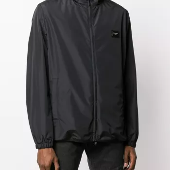 Dolce & Gabbana Men’s Black Windproof Jacket with Logo