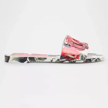 Dolce & Gabbana Floral Flat Sandals with Embossed Logo