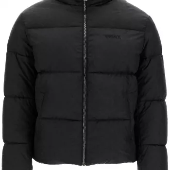 Versace Quilted Down Jacket with Paisley Pattern and Monogram Embroidery