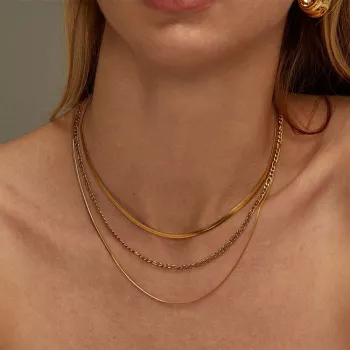 18K Gold Plated Stainless Steel Three-Layer Stackable Chain Necklace