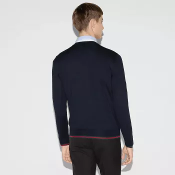 Gucci Wool Sweater with Iconic Multicolored Ribbed Bands