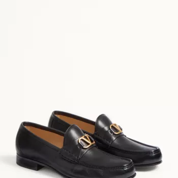 Valentino Garavani Leather Loafers with VLogo Plaque and Block Heel