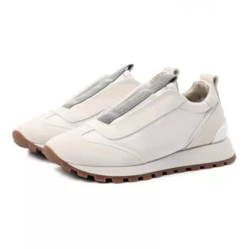Brunello Cucinelli Luxury Slip-On Sneakers with Shiny Jewels & Suede Details