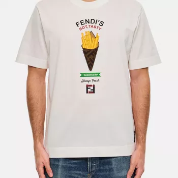 Fendi Monogram Cotton T-Shirt with Potato Chip Patch