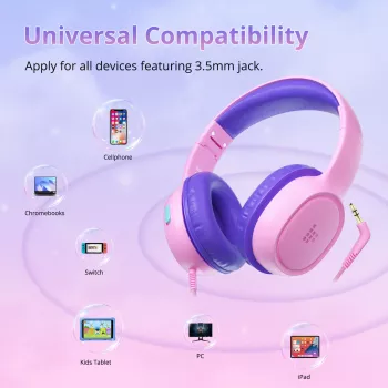 Wired Kids Headphones with Safe Volume Control, Foldable Over-Ear Design