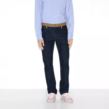 Gucci High-Waist Tapered Jeans with Iconic GG Waistband