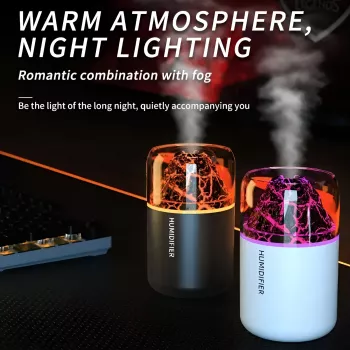 Mini Humidifier and Essential Oil Diffuser with Volcano Color Light