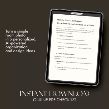 How to Use AI to Suggest Organization Hacks Based on a Photo | Digital Checklist for Smarter Home & Workspace Organization | AI Decluttering Guide Download
