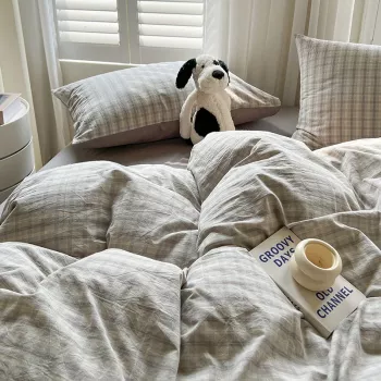 Classic Plaid Bedding Set Grey Pink Duvet Cover, Pillowcases & Bed Sheet