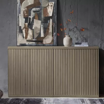 Mid-Century Modern Sideboard with Shelves and Fluted Doors