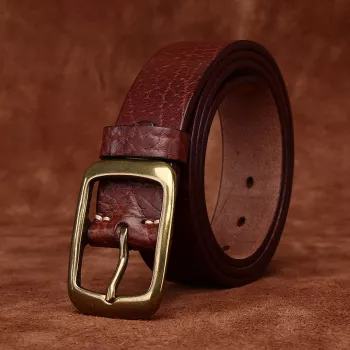 Men’s Vintage Genuine Cowhide Leather Belt with Solid Brass Buckle
