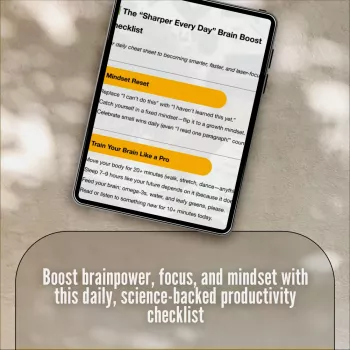 The “Sharper Every Day” Brain Boost Checklist – How to Become Smarter and More Focused | Daily Mindset, Focus & Productivity Printable