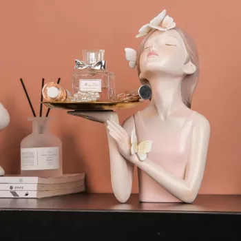 Each Bubble Bear Tray is designed with fine attention to detail, ensuring both durability and visual appeal. Measuring approximately 7.8 inches tall, it fits perfectly on TV cabinets, hallway consoles, or desktop corners without taking up too much space. The resin material is sturdy, easy to clean, and resistant to fading—making it a lasting addition to your home décor collection. Whether you’re using it to serve treats during movie night or to hold keys and trinkets by the door, this tray balances practicality with personality.