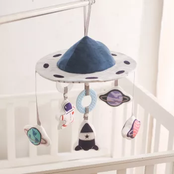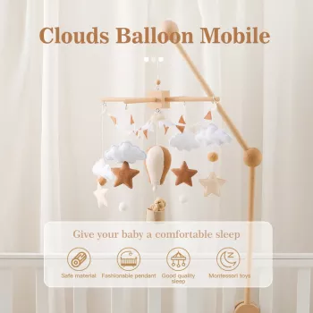 Wooden Baby Crib Mobile with Soft Felt Hot Air Balloons & Astronauts
