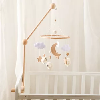 Wooden Baby Crib Mobile with Soft Felt Sheep