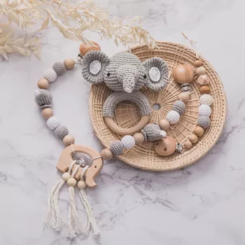 Baby Wooden Crochet Stroller & Crib Hanging Rattle Toy with Animal Pendants