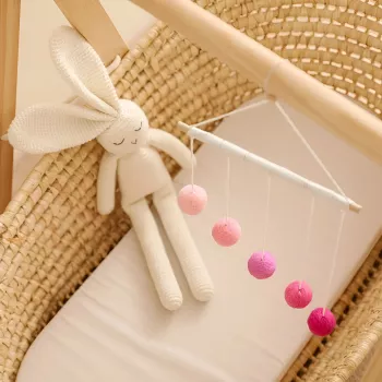 Wooden Baby Crib Mobile with Soft Pink Bear Rattles and Musical Hanging