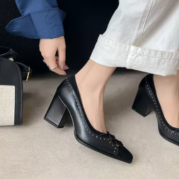 These flats are more than just eye-catching. Inside, they feature a full grain leather insole and genuine pigskin lining that keeps your feet cushioned and breathable. The 2 cm square heel offers subtle elevation for a refined posture without tiring your feet. A lightweight TPR outsole ensures flexibility and steady grip with every step.