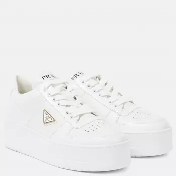 Prada Calfskin Sneakers with Iconic Logo and Non-Slip Platform Sole