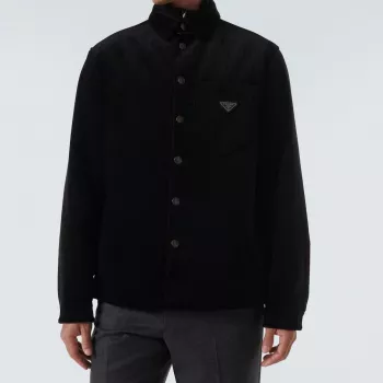 Prada Cashmere Cardigan with High Collar and Button Front Closure