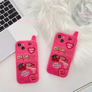 Retro Y2K 3D Cherry Heart Makeup Mirror Case – Soft & Shockproof for iPhone