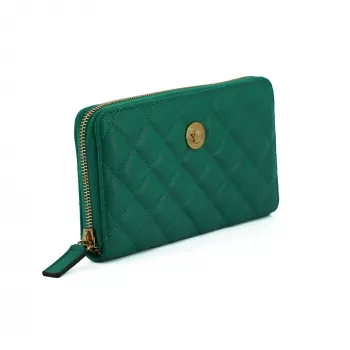 Versace Green Quilted Nappa Leather Long Zip Around Wallet with Medusa Logo