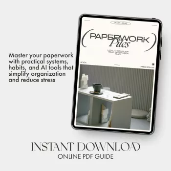 How to Conquer Your Paperwork Piles | Declutter & Organize Your Desk | Digital eBook Guide on what to do when paperwork piles up | Printable Productivity Resource