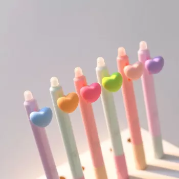 Kawaii Erasable Gel Pens Set – Cute Heart Design, 0.5mm Blue Ink