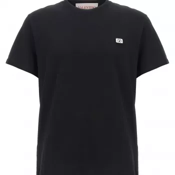 Valentino Cotton T-Shirt with Logo Patch and Monochrome Design