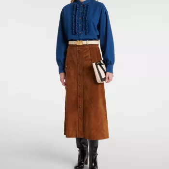 Valentino Denim Shirt with Ruffle Details and Decorative Buttons