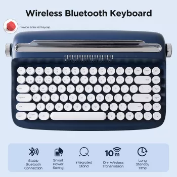 Retro Wireless Bluetooth Typewriter Keyboard with Stand