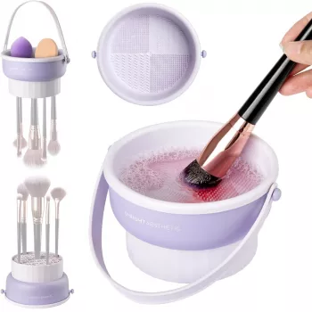 Silicone Makeup Brush Cleaning Bowl & Drying Tool Storage Set