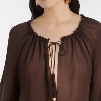 Tom Ford Silk Georgette Blouse with Tasseled Drawstring Neckline