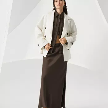 Brunello Cucinelli Monochrome Midi Skirt with Side Slit and Petticoat