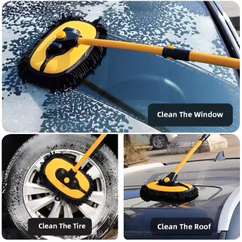 Telescoping Car Wash Mop with Retractable Handle and Flexible Brush Head