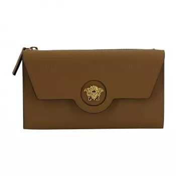 Versace Brown Calf Leather Wallet with Medusa Logo and 12 Card Slots