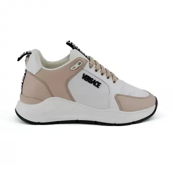 Versace Light Pink and White Calf Leather and Nylon Sneakers with Medusa Logo